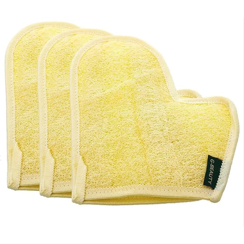 لوفة تدليك صغيرة مزدوجة الوجه من جي بيوتي GBY-010، قفاز طبيعي، للاستحمام والسبا والدش - مجموعة من 3 قطع - بيج
