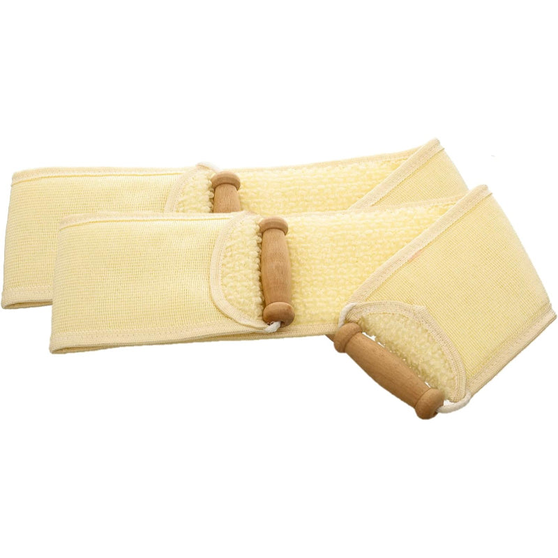 ليفة تدليك بيضاوية طبيعية مزدوجة الوجه من جي بيوتي GBY-022 بمقابض خشبية للحمام والسبا والدش - طقم من قطعتين - بيج
