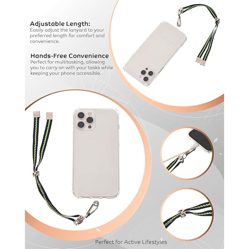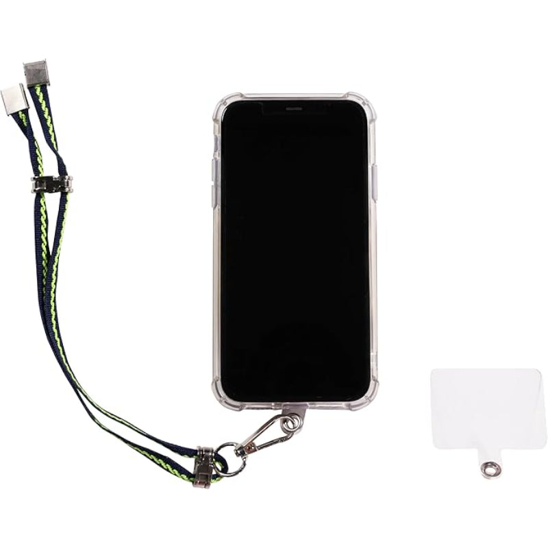 حبل تعليق للهاتف المحمول من G-Power، حبل تعليق مريح وسهل الاستخدام، بطول قابل للتعديل مع رقعة شفافة تناسب جميع الهواتف المحمولة - أزرق داكن ليموني