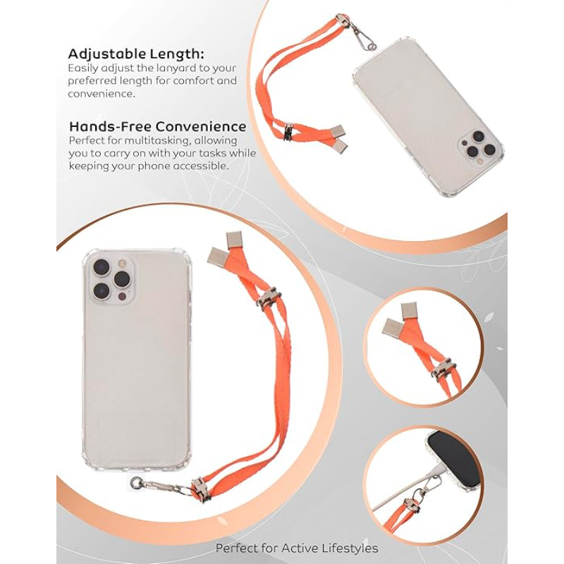 حبل تعليق للهاتف المحمول من G-Power، حبل تعليق مريح وسهل الاستخدام، بطول قابل للتعديل مع رقعة شفافة تناسب جميع الهواتف المحمولة - برتقالي