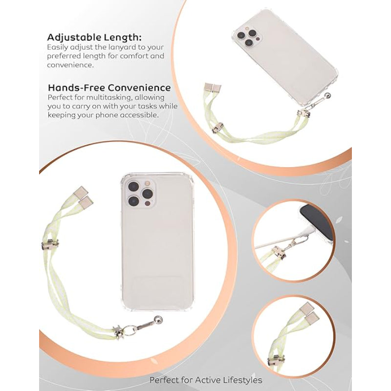 حبل تعليق للهاتف المحمول من G-Power، حبل تعليق مريح وسهل الاستخدام، بطول قابل للتعديل مع رقعة شفافة تناسب جميع الهواتف المحمولة - أبيض ليموني