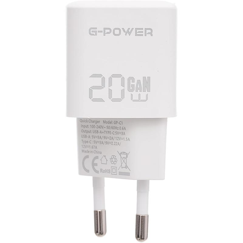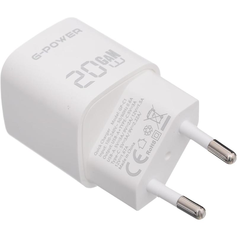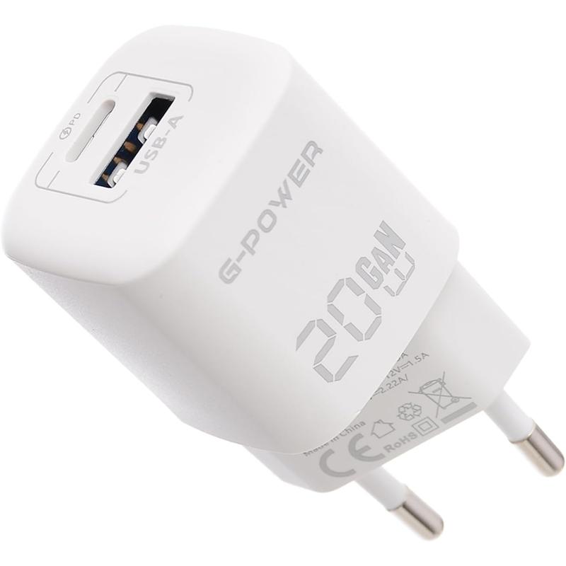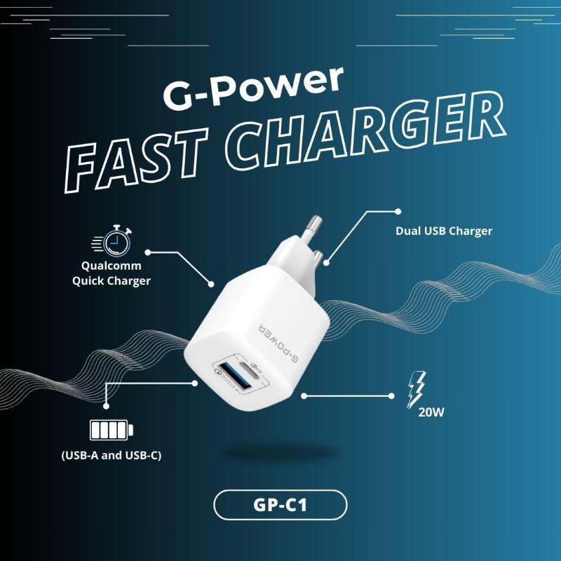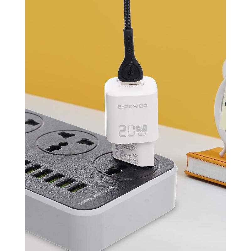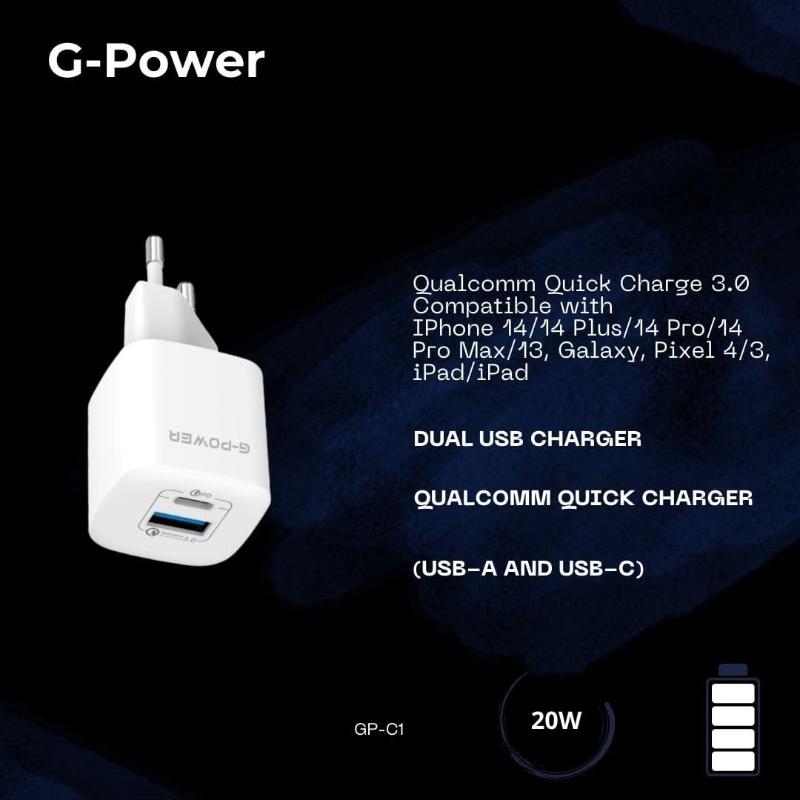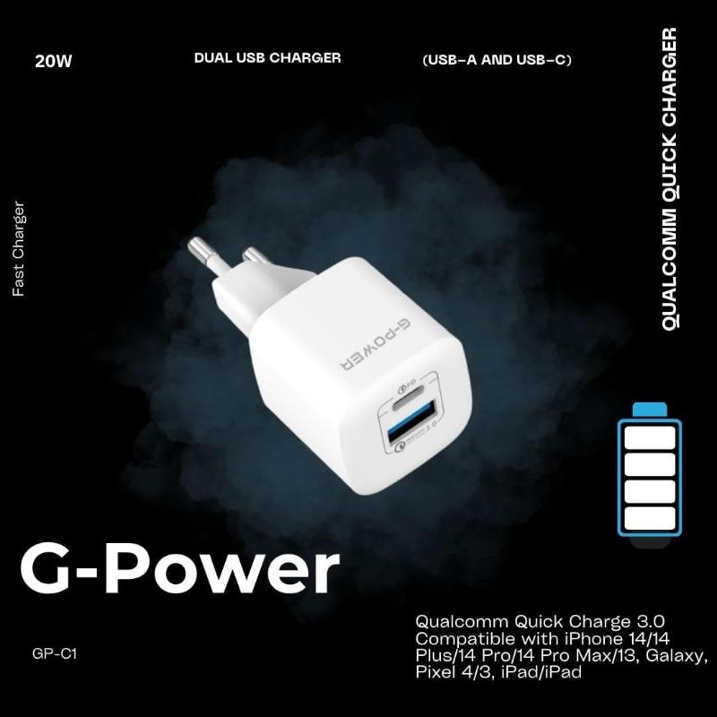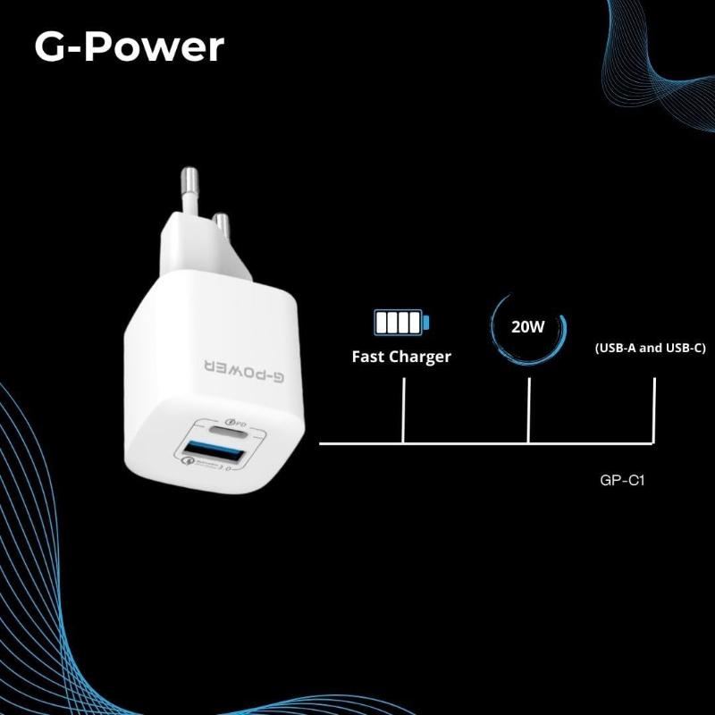 شاحن G-Power GP-C1 ثنائي USB بقوة 20 واط | USB-A وUSB-C - أبيض