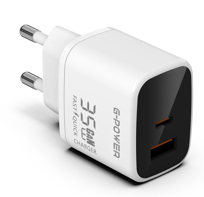 شاحن G-Power GP-C11 ثنائي USB بقوة 35 واط | USB-A وUSB-C، شحن سريع 3.0 - أبيض