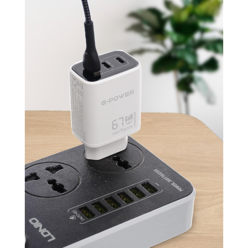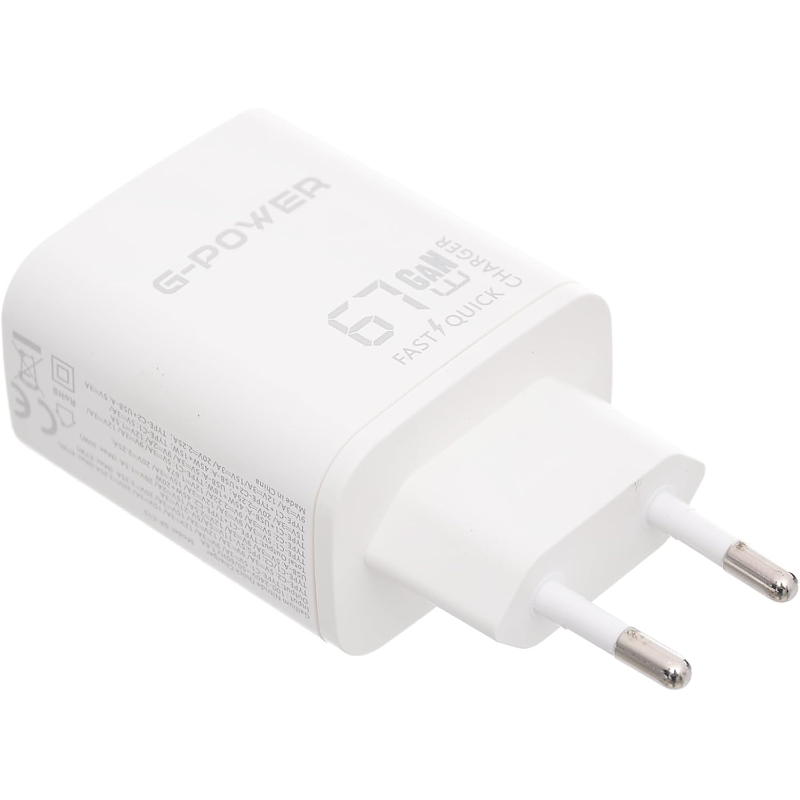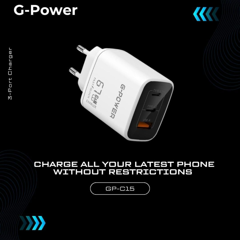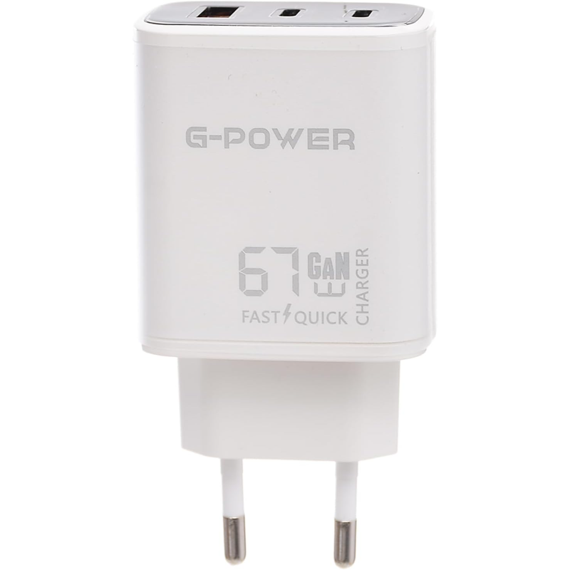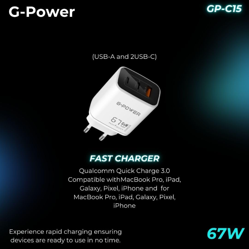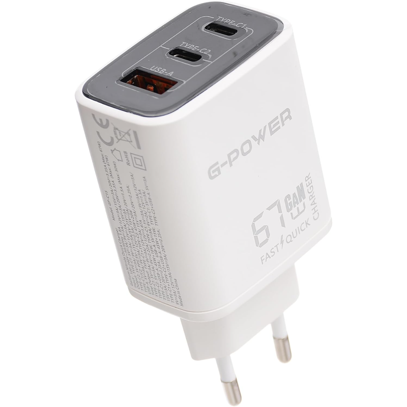 شاحن G-Power GP-C15، 67 واط، 3 منافذ | USB-A ومنفذان USB-C، شحن سريع 3.0 - أبيض