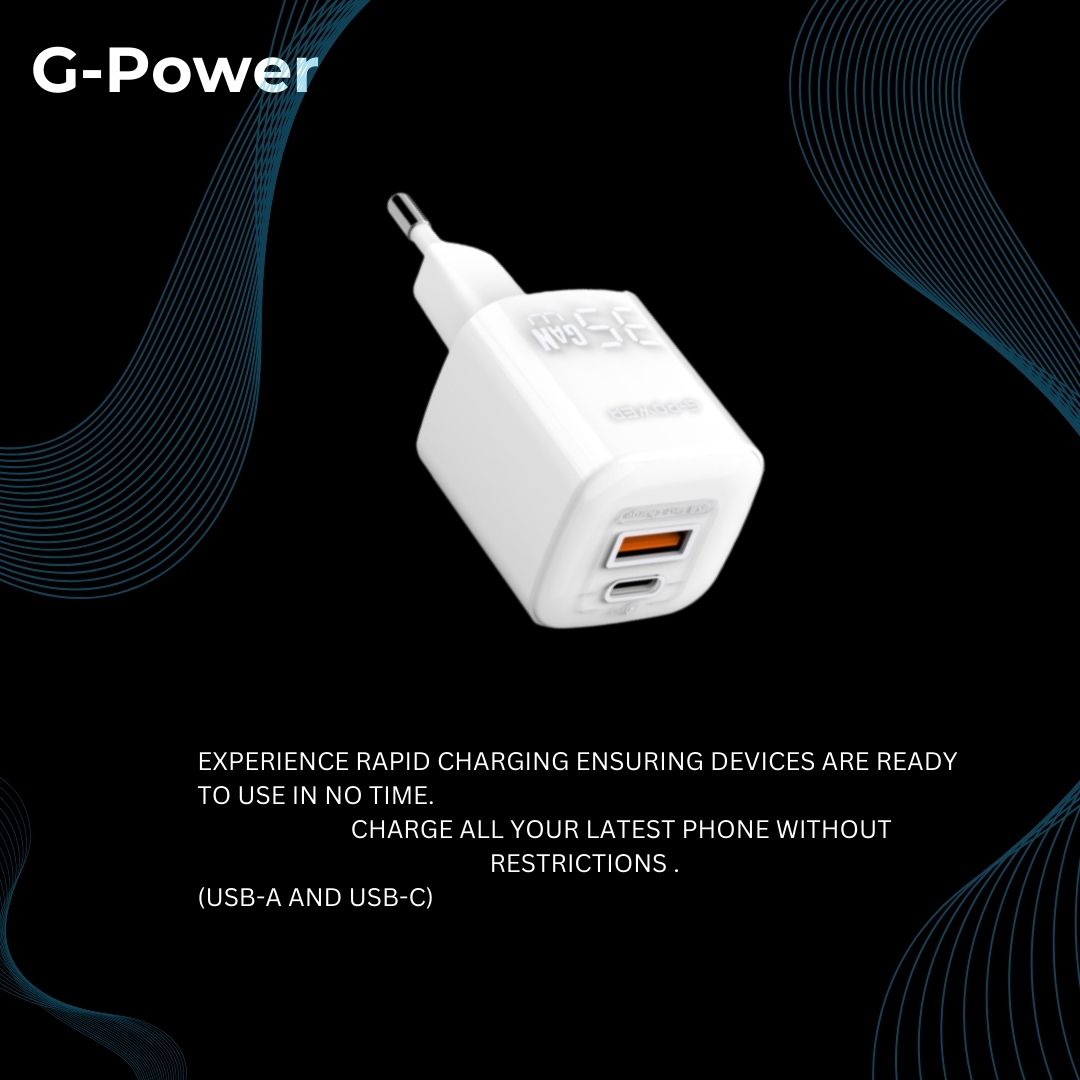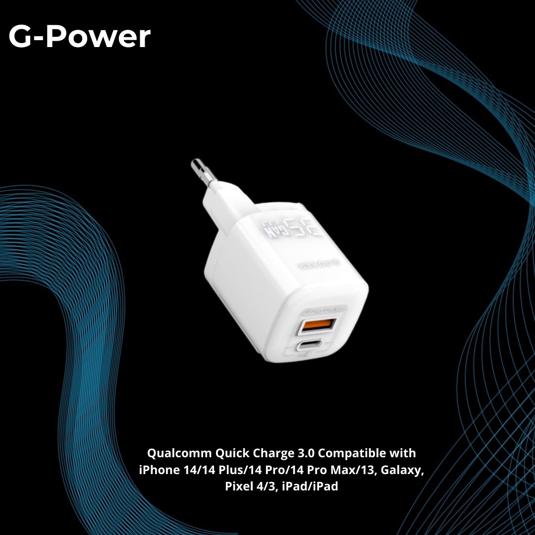 شاحن G-Power GP-C20 ثنائي USB بقوة 35 واط | USB-A وUSB-C، شحن سريع 3.0 - أبيض