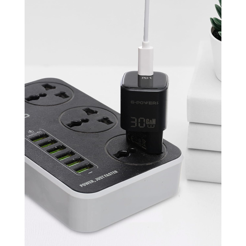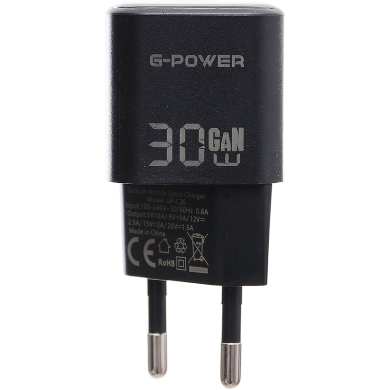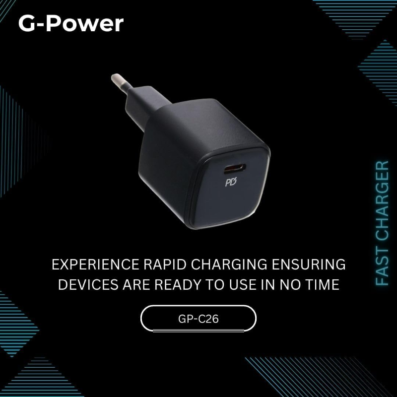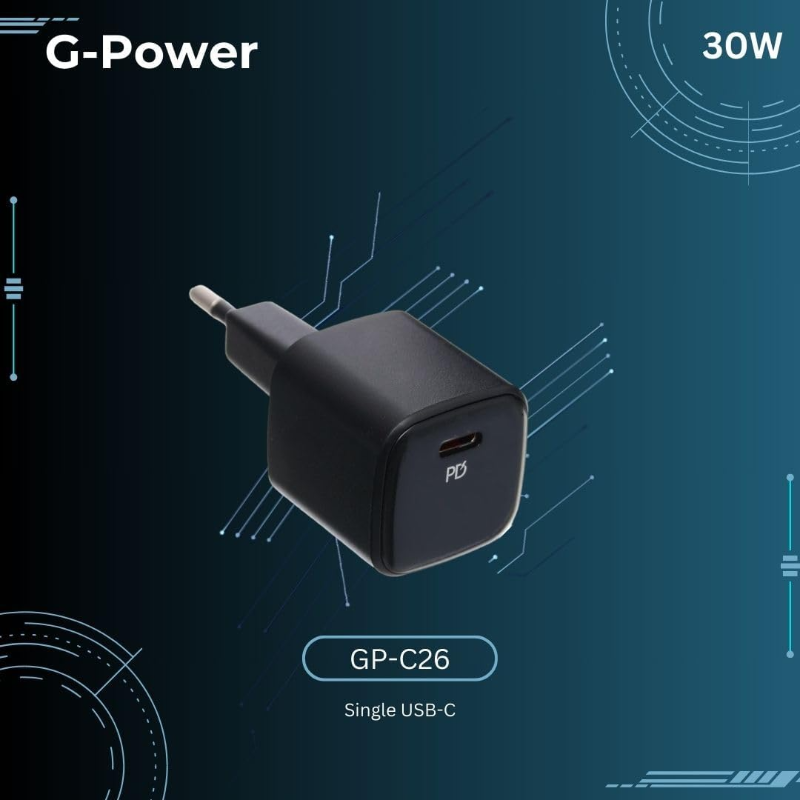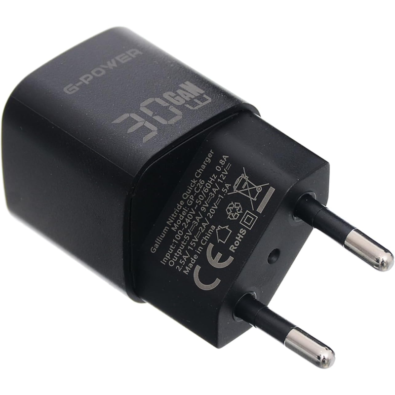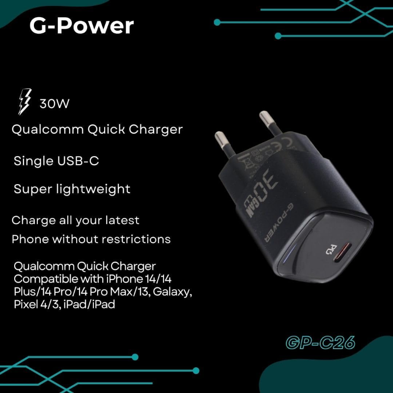 شاحن سريع G-Power GP-C26 بمنفذ USB-C من كوالكوم بقوة 30 واط - أسود