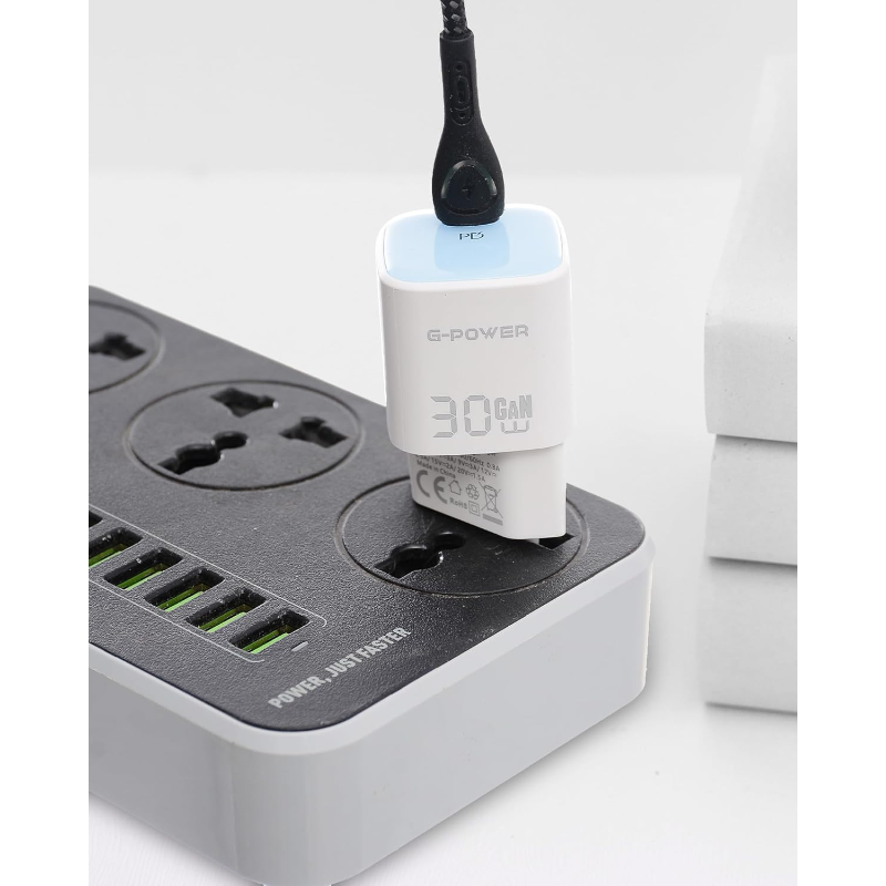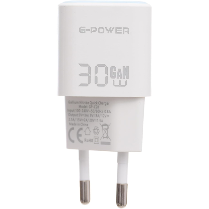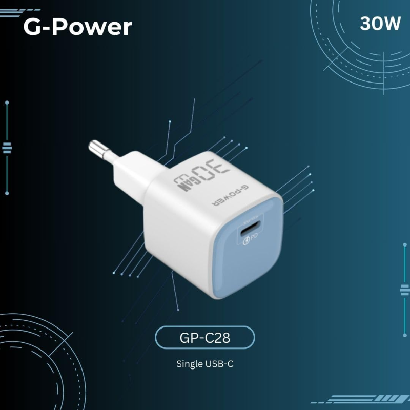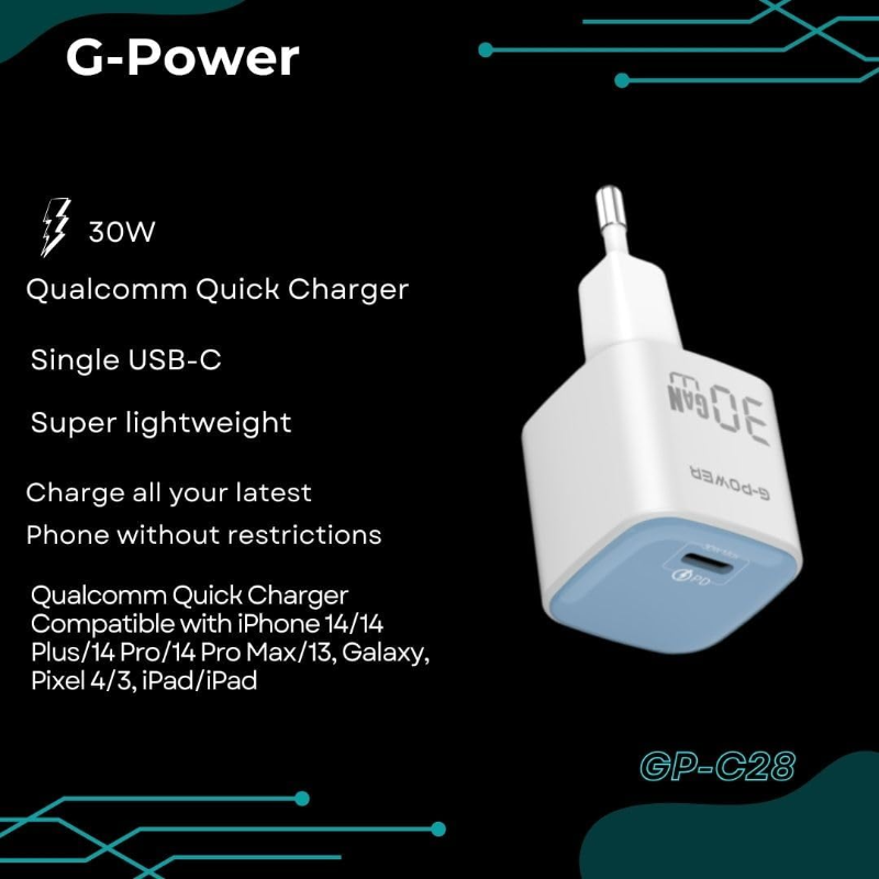 شاحن سريع G-Power GP-C28 بمنفذ USB-C من كوالكوم بقوة 30 واط - أزرق