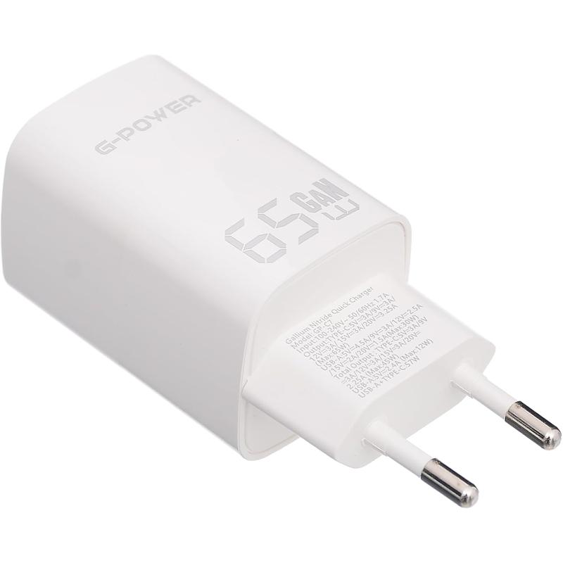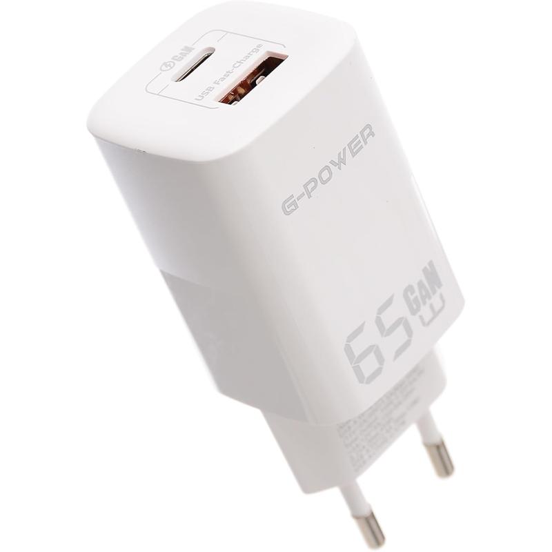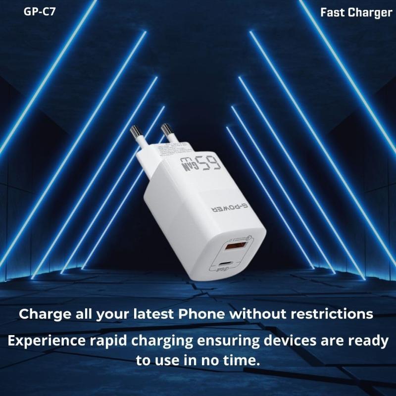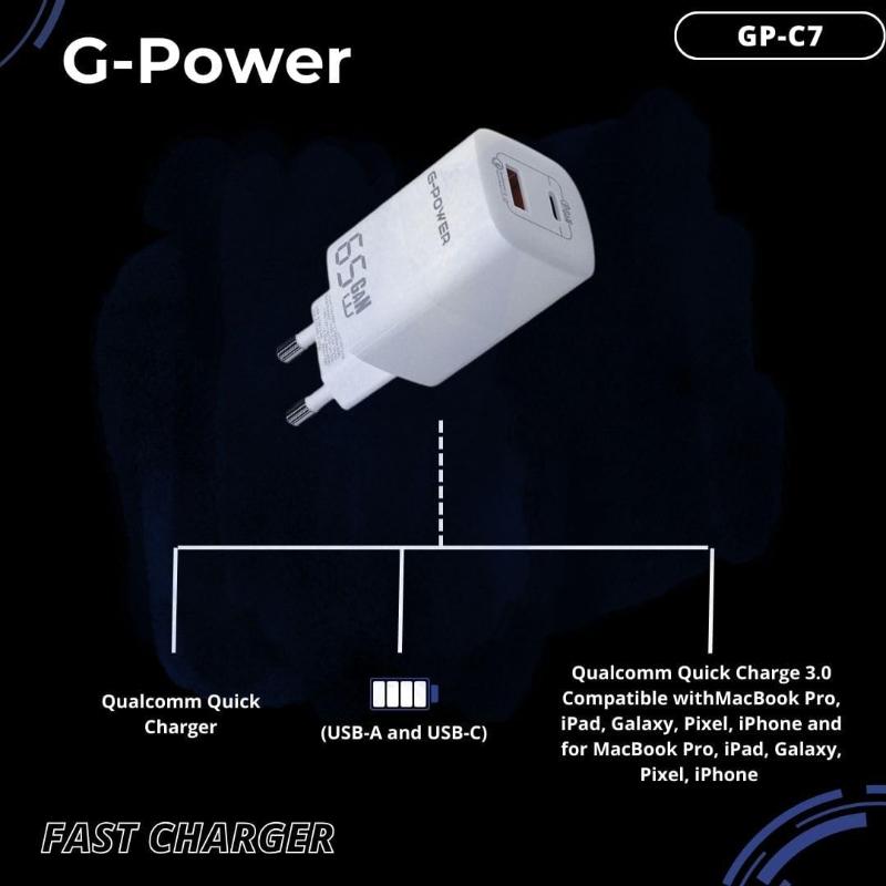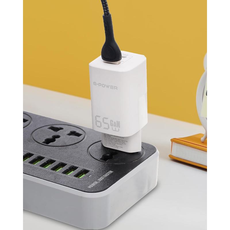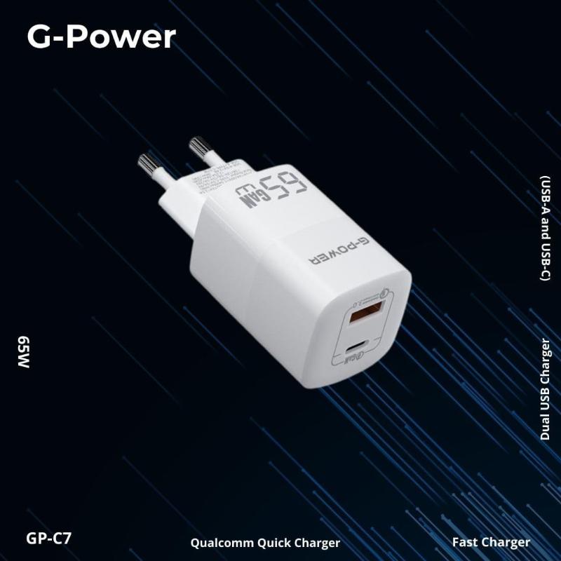 شاحن G-Power GP-C7 ثنائي USB بقوة 65 واط | USB-A وUSB-C، شحن سريع 3.0 - أبيض
