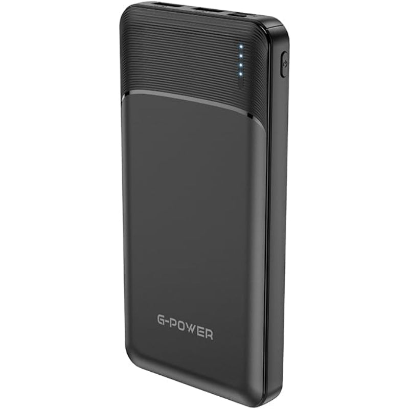 جي-باور GP001 باور بانك من سلسلة بريق | 10,000mAh، 4 منافذ (2 USB، Micro، Type-C)، شحن سريع 22.5 واط - أسود