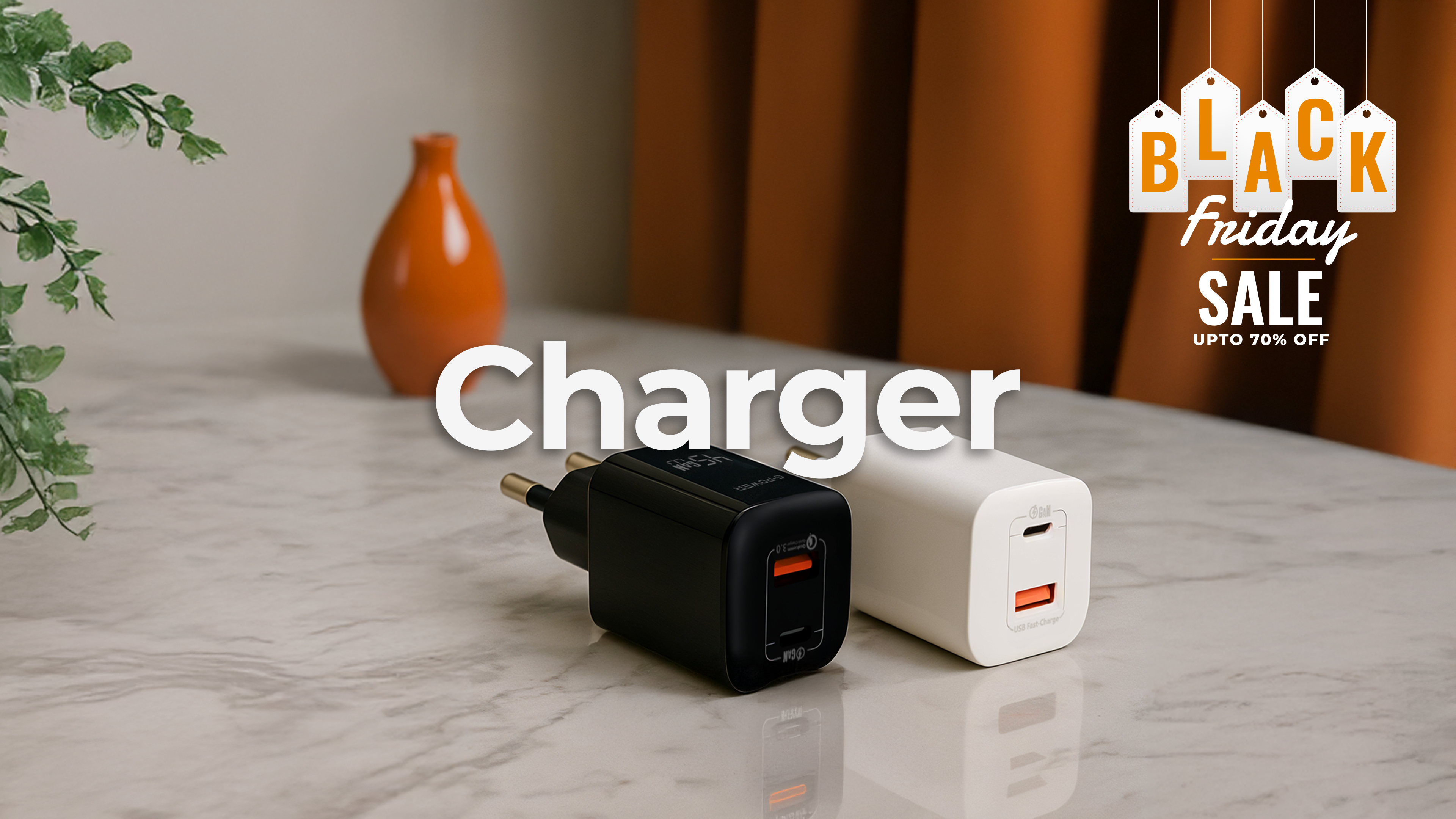 G-Power GP-C16 67W 3-Port Charger | USB-A & 2 USB-C, Quick Charge 3.0 - Black