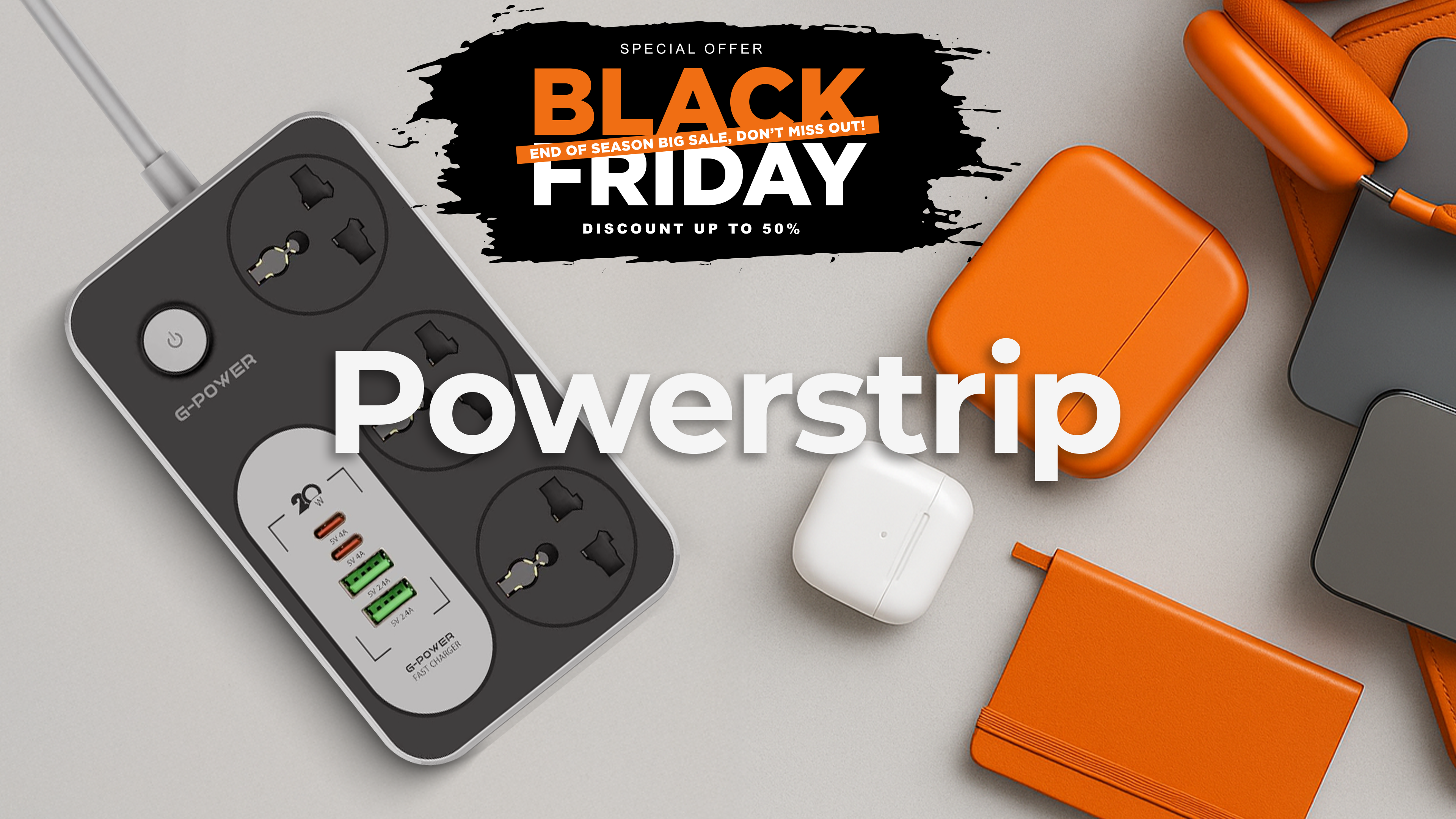 G-Power WS342 Power Strip | 2 Type-C 20W Ports, 220V - Black/Grey