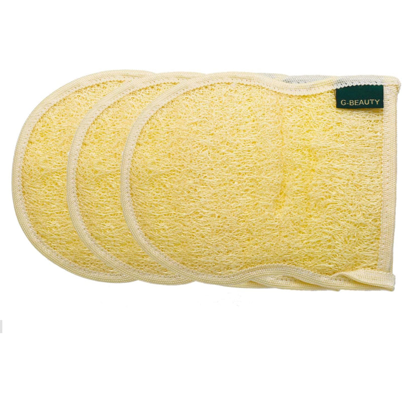 G-Beauty GBY-007 Small Natural Oval Glove Double Face Massage Loofah for Bath, Spa, and Shower - Set of 3 Pieces - Beige