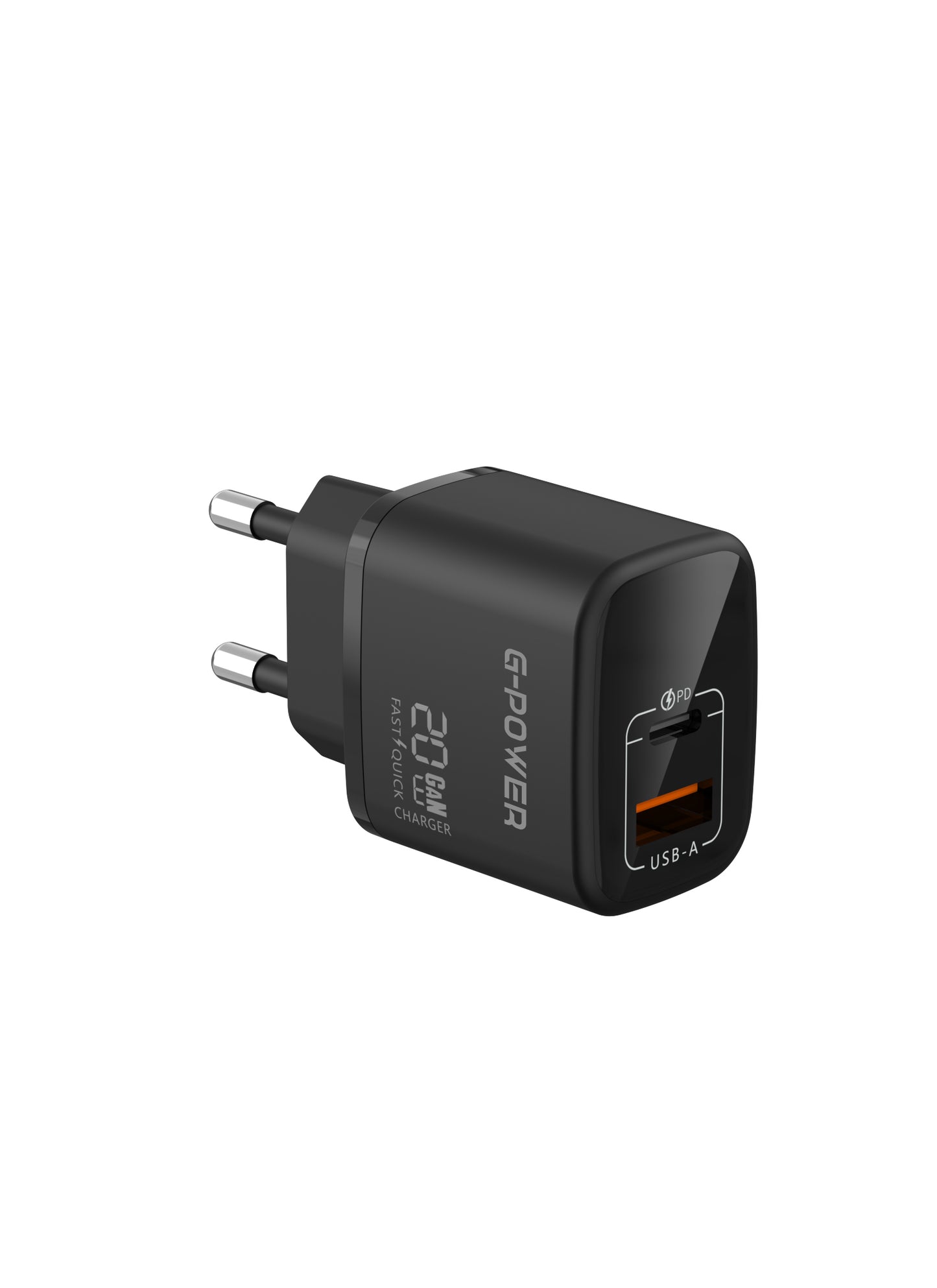 G-Power GP-C10 20W Dual USB Charger | USB-A & USB-C, Quick Charge 3.0 - Black