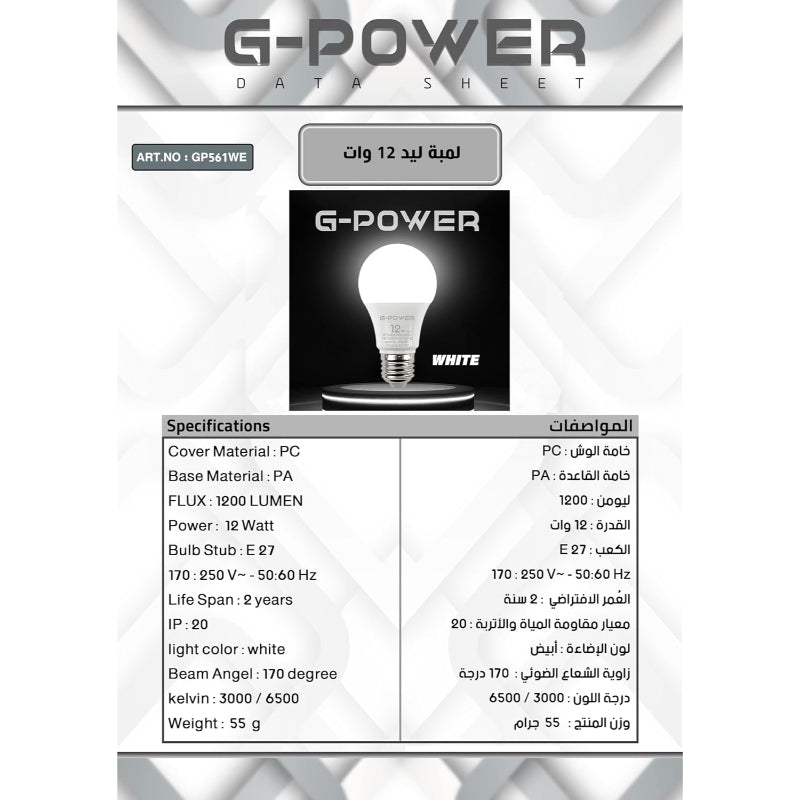G-POWER GP561WE LED Lamp | Classic Design, 1200 Lumen, 12W - White