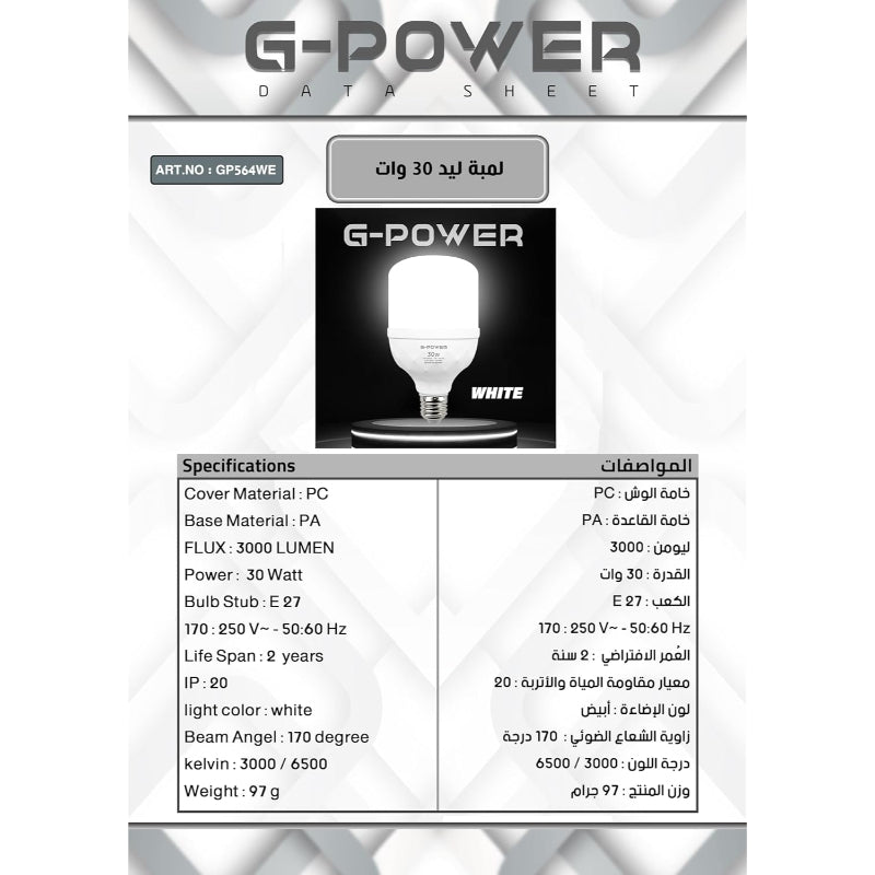 G-POWER GP564WE LED Lamp | Classic Design, 3000 Lumen, 30W - White