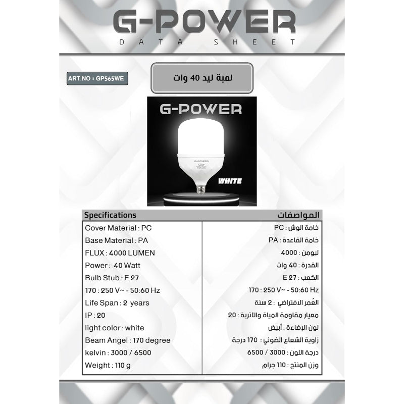 G-POWER GP565WE LED Lamp | Classic Design, 4000 Lumen, 40W - White