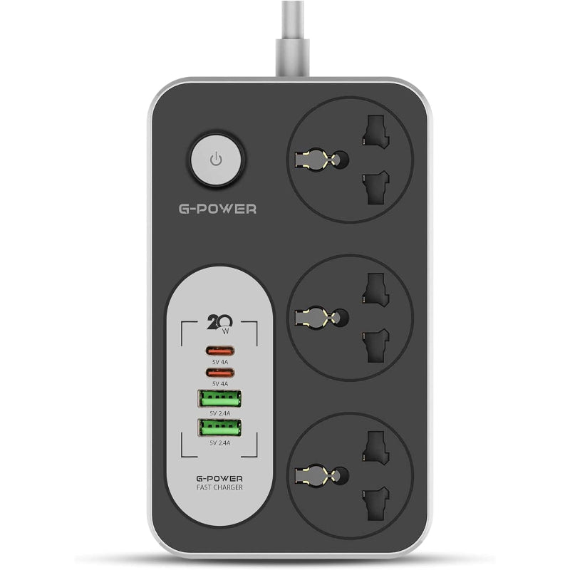 G-Power WS342 Power Strip | 2 Type-C 20W Ports, 220V - Black/Grey